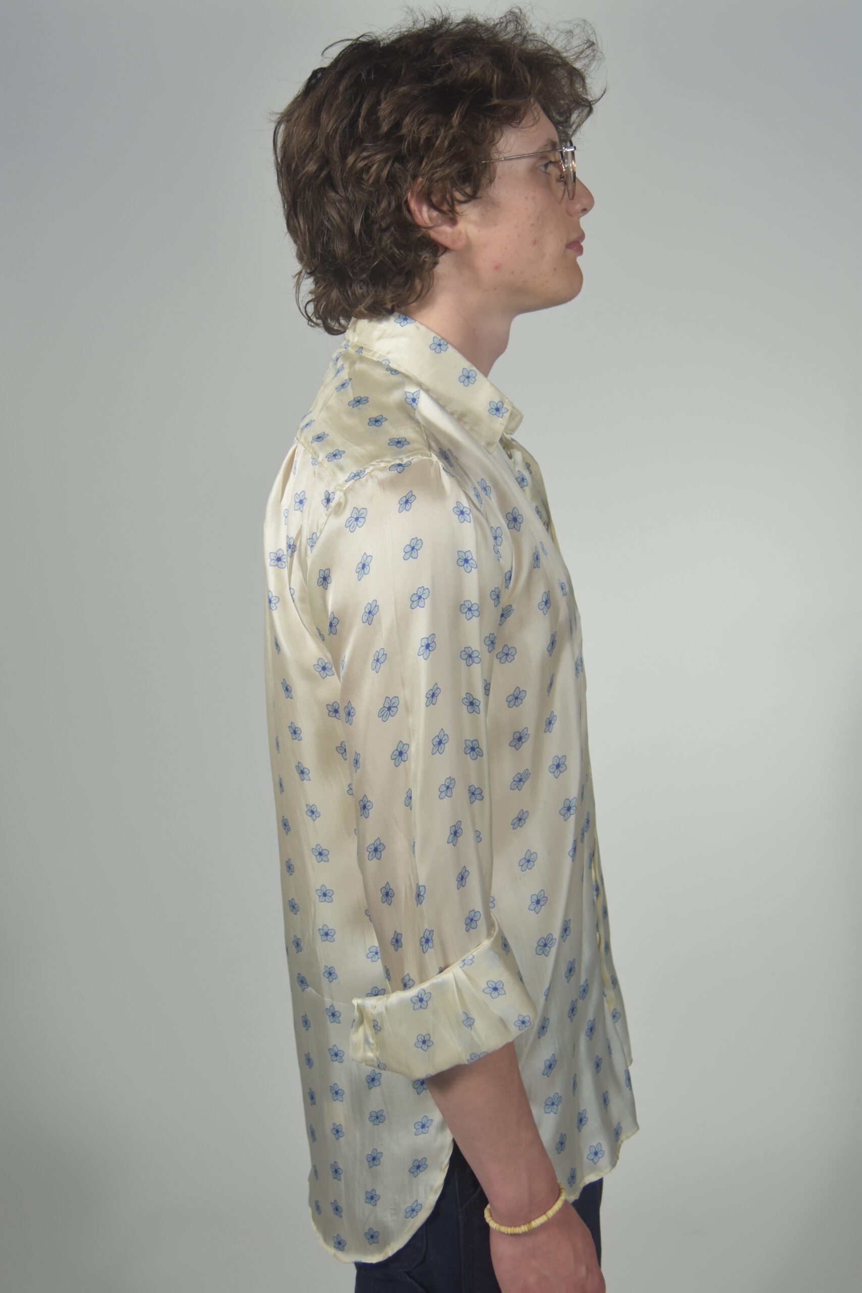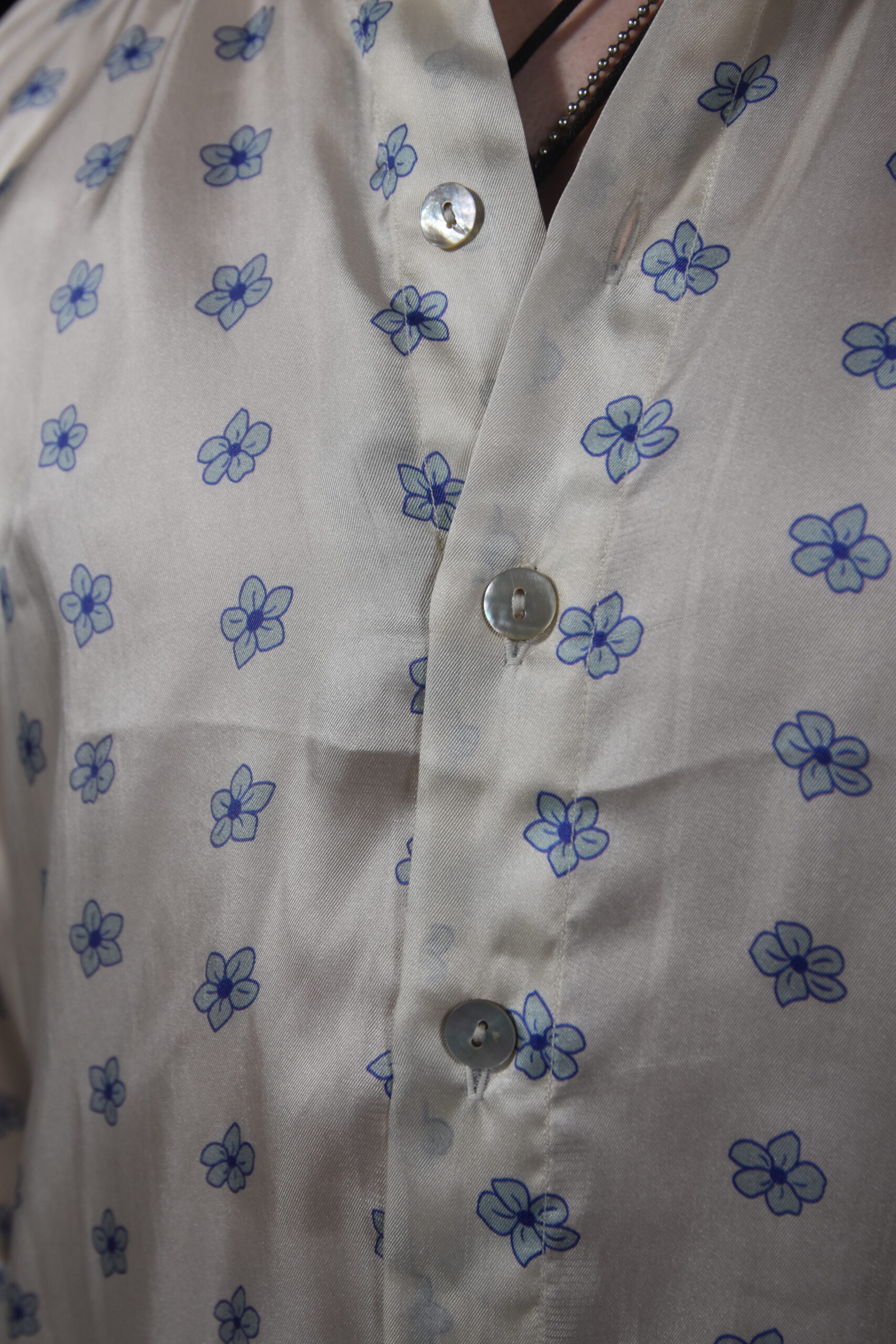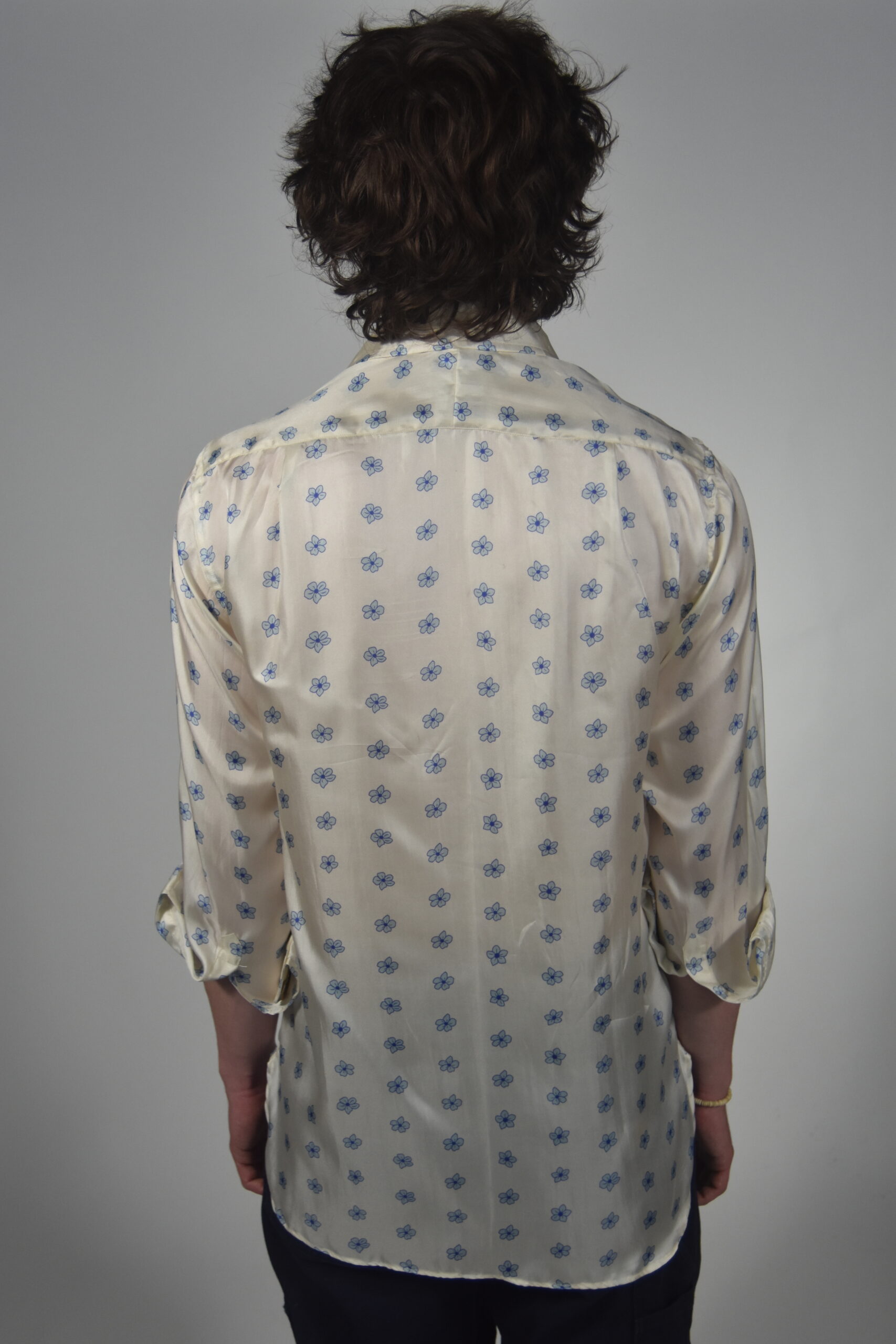 A simple silk shirt. The collars are understated and soft, entirely hand-constructed, as the whole shirt is, by a tailor in their own workshop. The hem of the shirt is curved and the buttons are always made of natural shell. The fit is easy and comfortable. The sort of shirt you can have on and go about your business not remembering, while everyone around you thinks what a nice shirt you have on. Meant to be worn un-tucked, but of course you can have it made at the length you desire. A pattern will be cut and the shirt made for you once you order and submit your measurements.